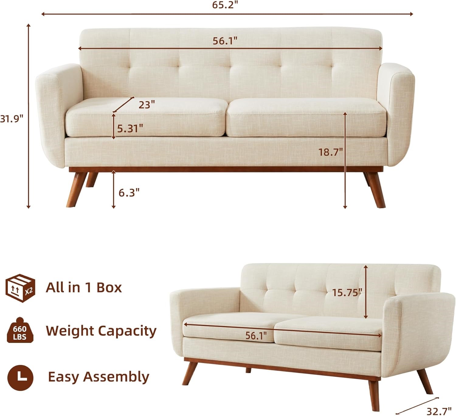 65" wide seating easily accommodates 2–3 visitors. Thick foam cushions provide supportive comfort for conversations and networking.