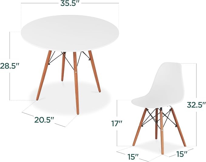- ● 35.5"D x 28.5"H Round Table with 4 Chairs