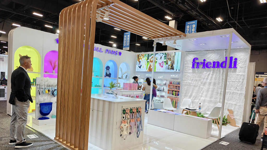 This booth creates a strong brand presence with elevated signage and vibrant visuals. By integrating LED content, bold colors, and interactive counters, it effectively showcases core products while enhancing visitor engagement at the exhibition.